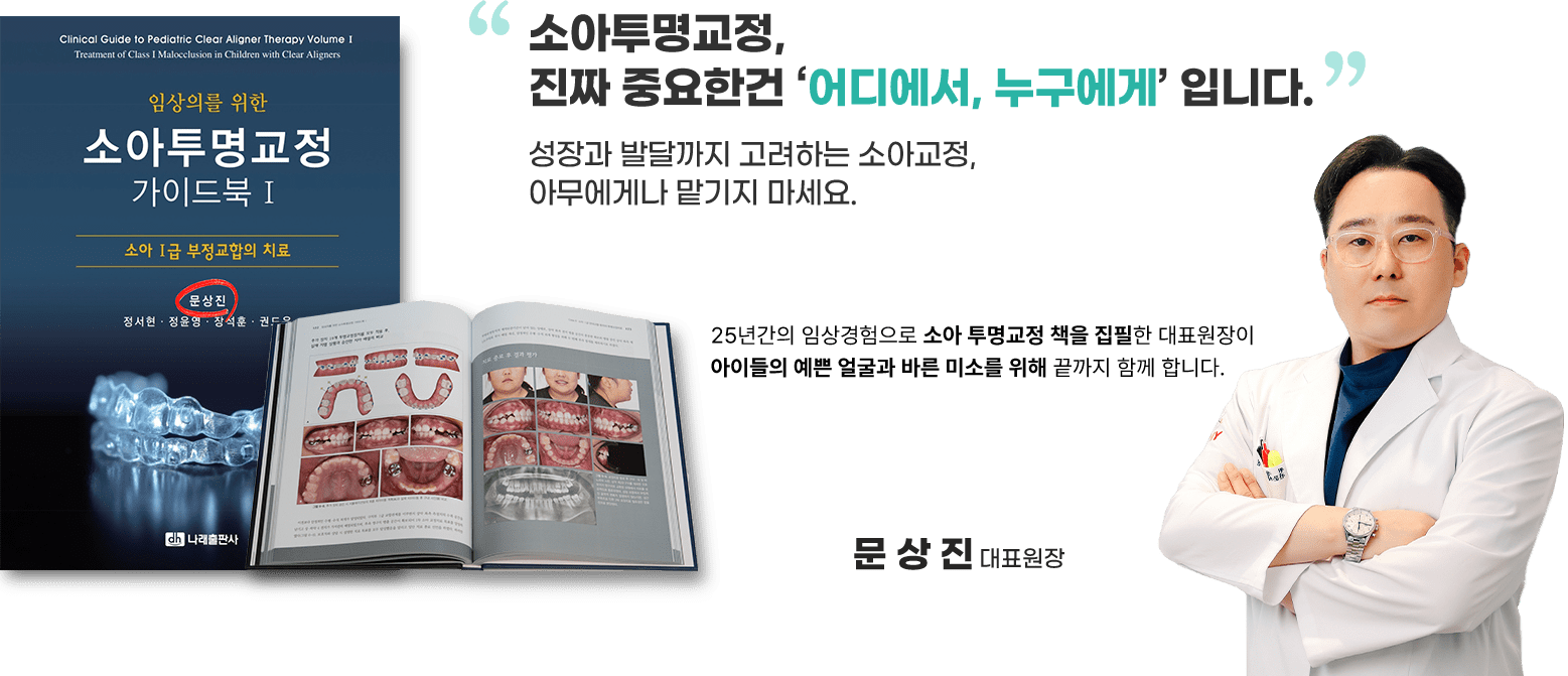 풍부한 경험으로 소아 투명교정 책 집필한 대표원장이 아이들의 예쁜얼굴과 바른 미소를 위해 끝까지 함께 합니다.
